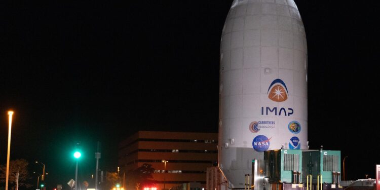 NASA has completed integration and encapsulation of the Interstellar Mapping and Acceleration Probe (IMAP)Falcon 9 launch no earlier than 7:32 a.m. EDT on Tuesday, Sept. 23, from Launch Complex 39A at Kennedy Space Center. The milestone follows a successful Flight Readiness Review, confirming the mission’s readiness to proceed with final launch preparations. Source: NASA.