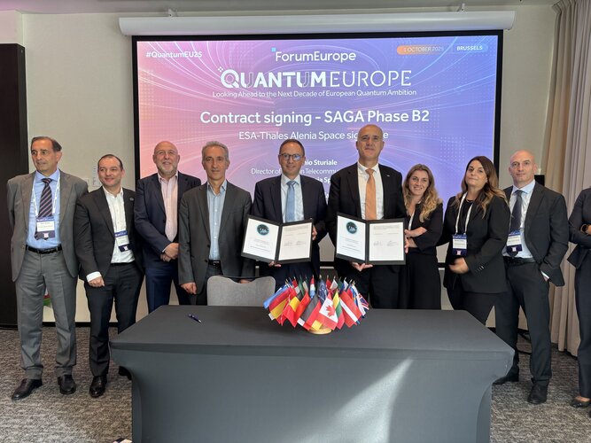 The European Space Agency has awarded a €50 million contract to Thales Alenia Space to advance the preliminary design of the SAGA (Security And cryptoGrAphic) mission, a satellite program intended to demonstrate quantum-secure communications across Europe. The award clears the mission to proceed toward its preliminary design review, a key step in maturing space-based quantum key distribution capabilities.